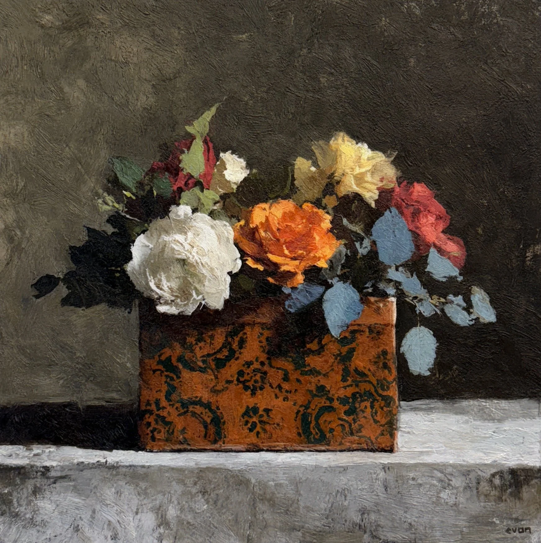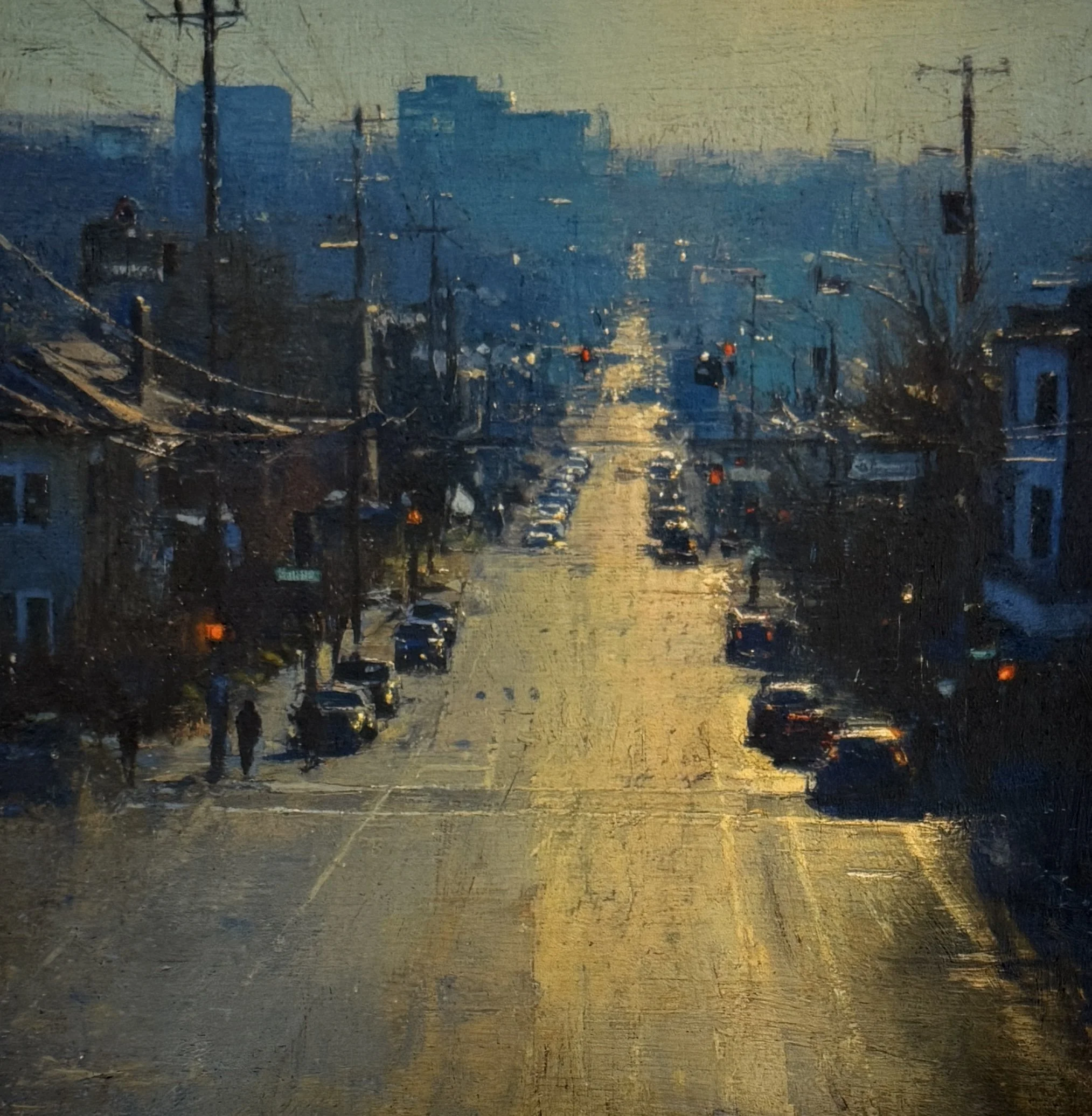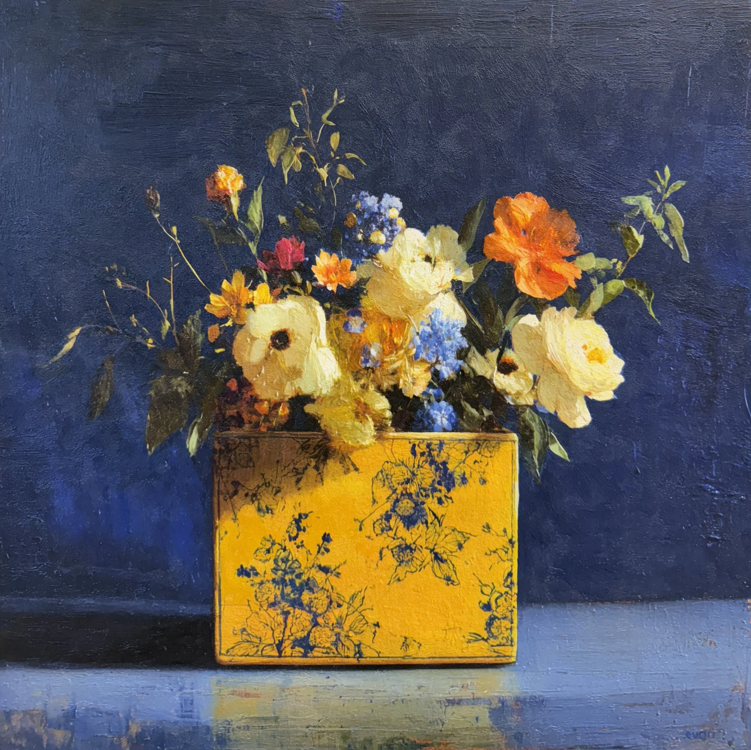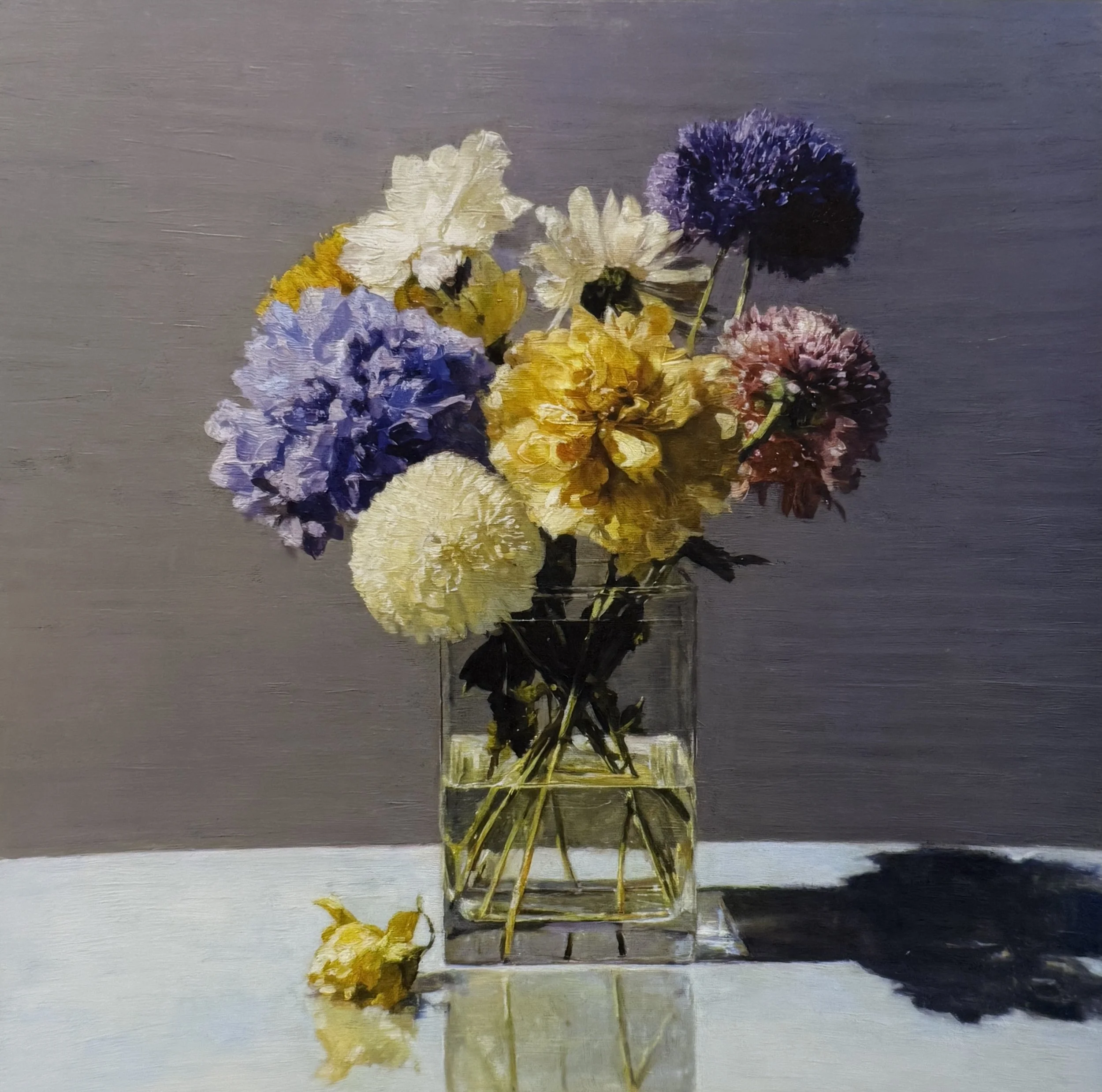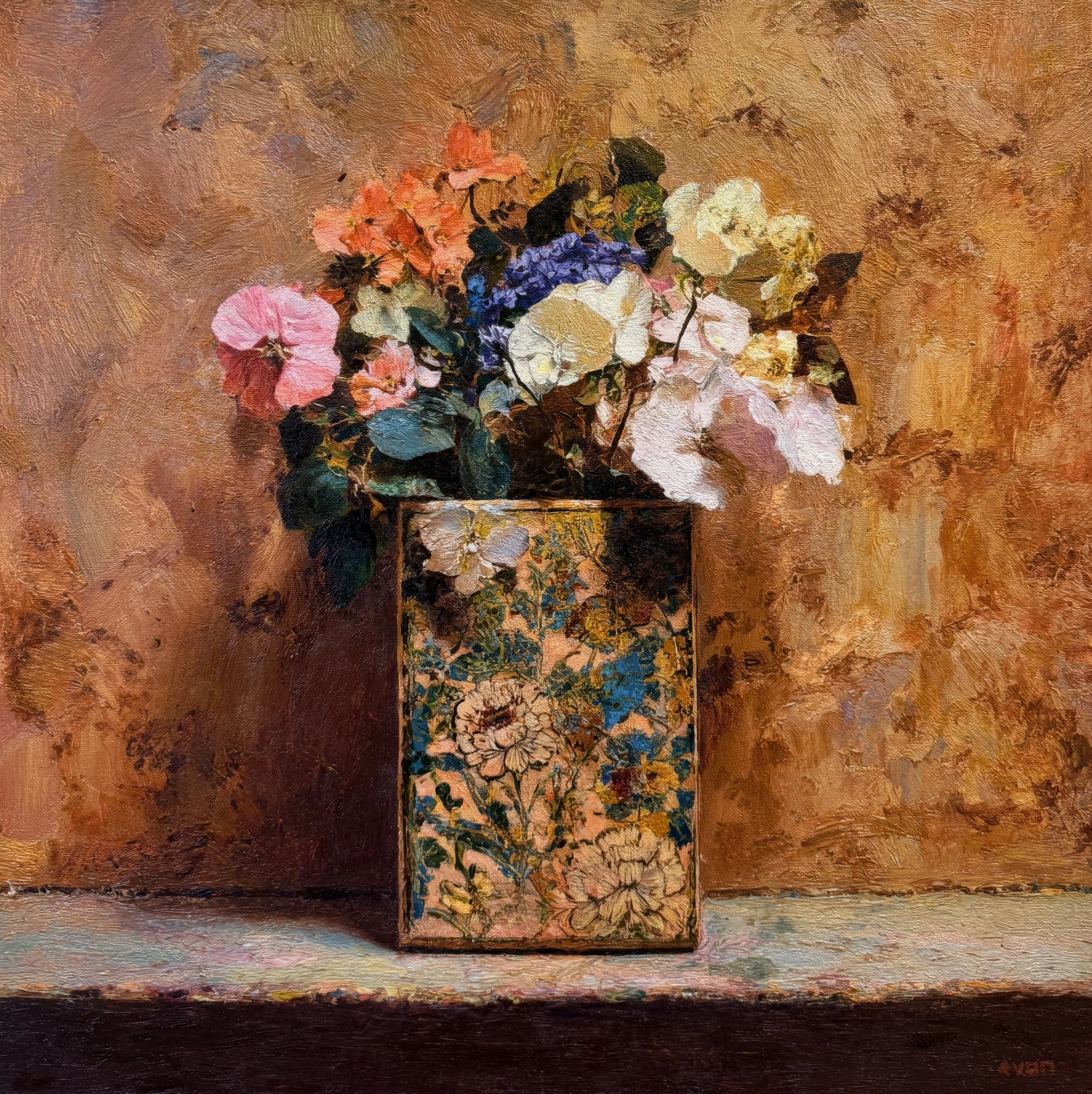 I begin with a ground of gesso and pumice, coarse and resistant, functioning both as a record of the initial impression, a compositional sketch, and a physical landscape — scarred, gritty, and alive. Over this surface, materials accumulate: transparent washes of acrylic drift like weather, pen and ink lines carve out clarity, and oil settles with weight and finality or scatters across the surface like wildflowers.